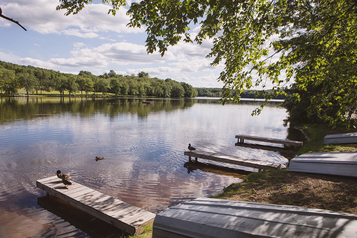 Our resort includes a private 76-acre Lake for your enjoyment and all accommodations have their own complimentary rowboat. Please use your private boat and dock only. Additional rowboats, canoes, paddle boats and electric trolling motors are available for rent (subject to availability). Gas powered motors are not permitted.